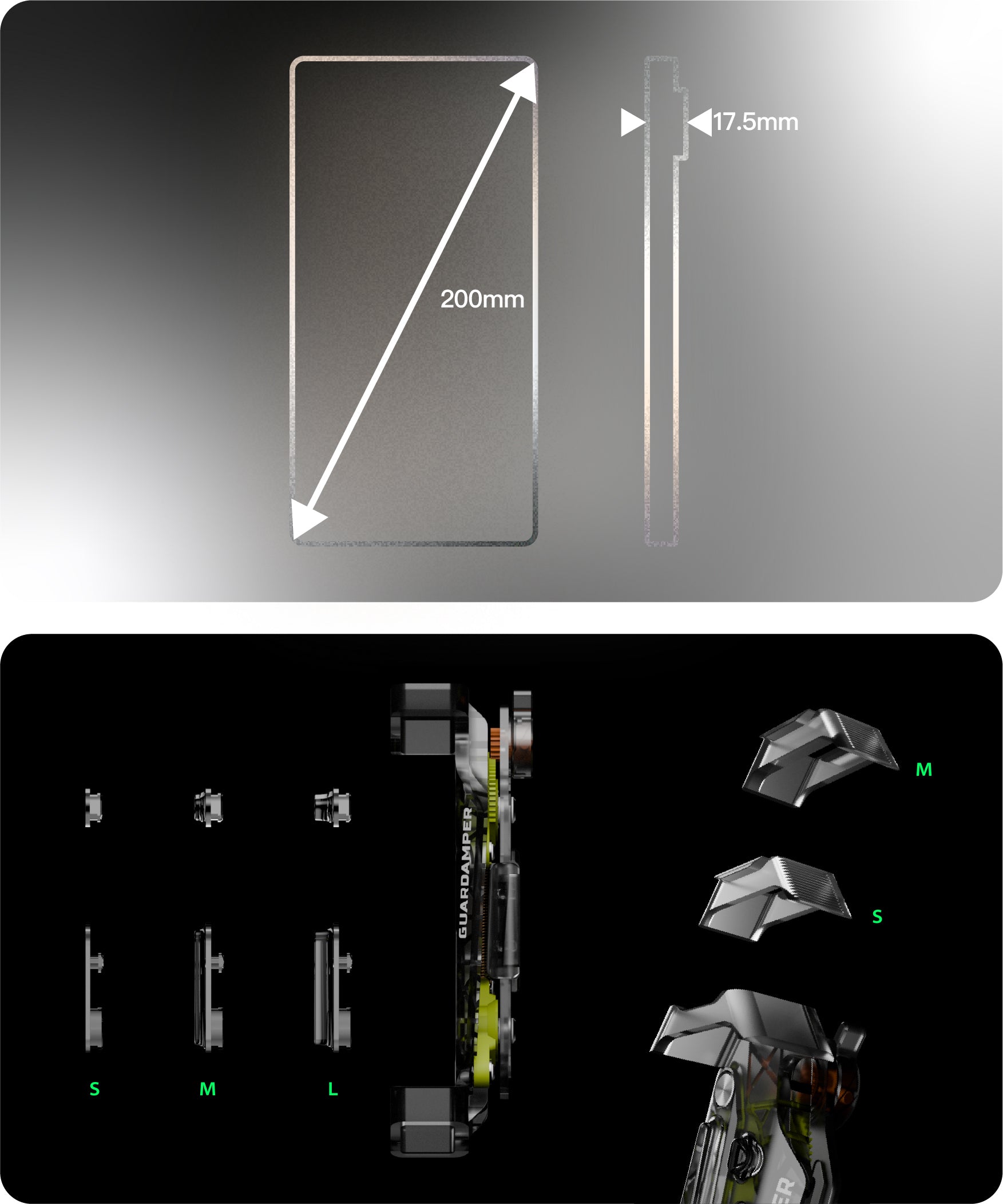 The core structure is built from premium Crystalic™ polymer, offering exceptional impact resistance and deformation strength. The top, bottom, and base plates are wrapped in high-performance shock-absorbing silicone, effectively protecting your phone against vibrations and rough terrain.