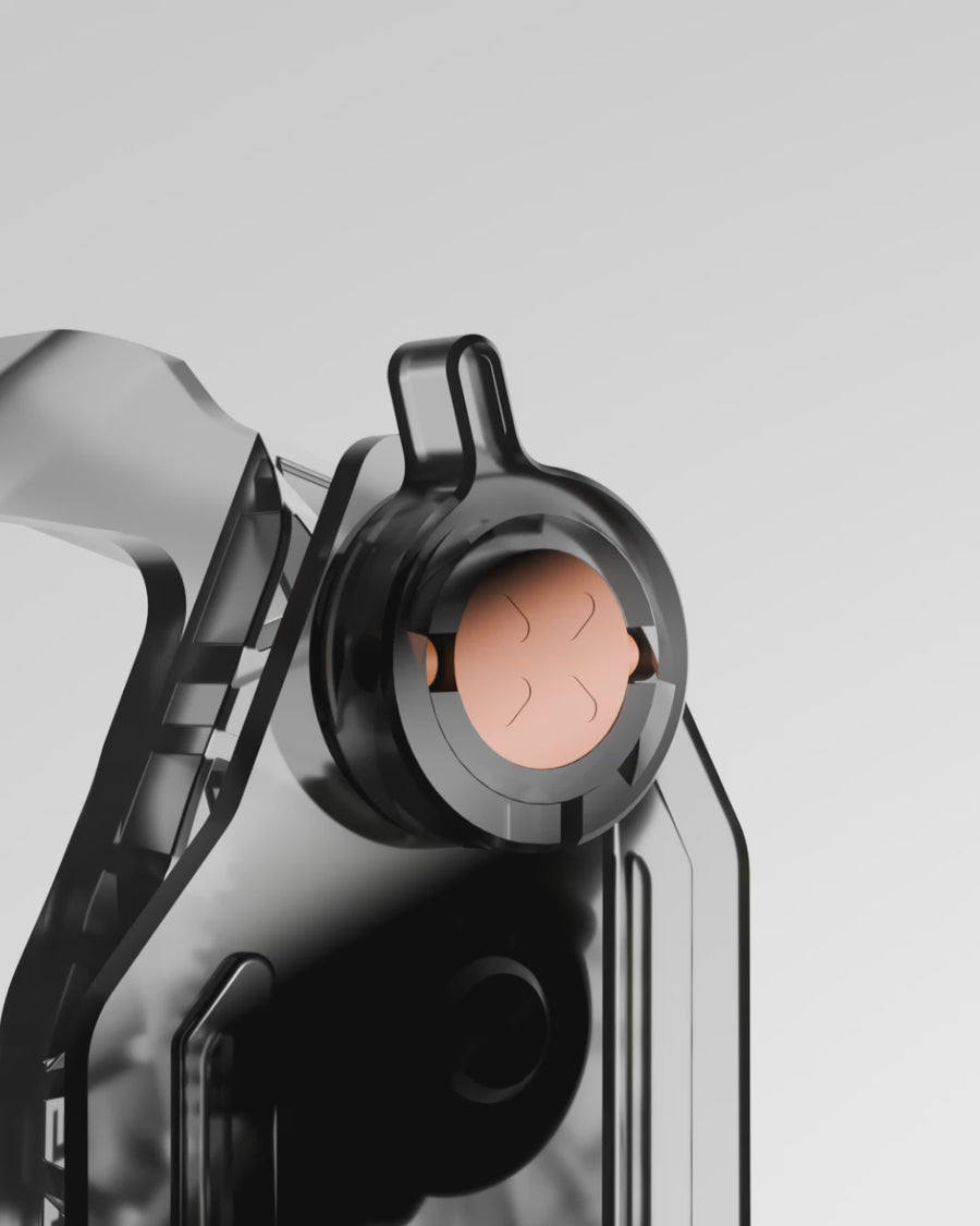 Its high transparency highlights every mechanical detail, turning the mount into both a functional tool and a piece of design you can appreciate from any angle.